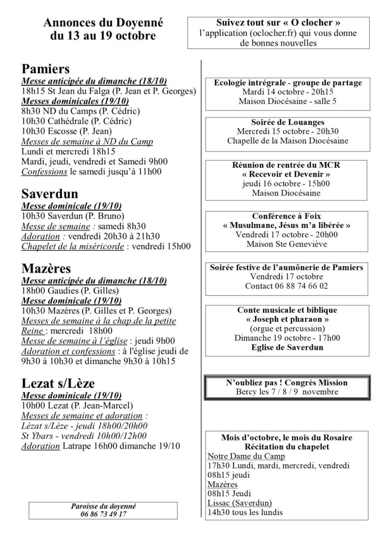 - L’Abbé Georges Akladje Komi est nommé vicaire de l’ensemble pastoral du Doyenné de Pamiers (Paroisses de Lézat-sur-Lèze, Mazères, Pamiers et Saverdun), en résidence à Pamiers.