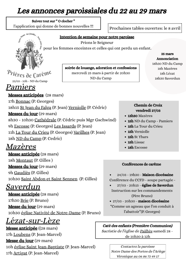 - L’Abbé Georges Akladje Komi est nommé vicaire de l’ensemble pastoral du Doyenné de Pamiers (Paroisses de Lézat-sur-Lèze, Mazères, Pamiers et Saverdun), en résidence à Pamiers.