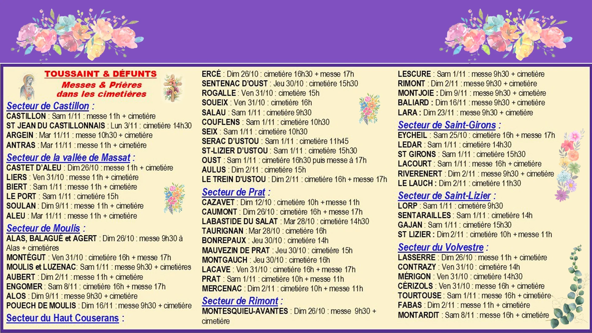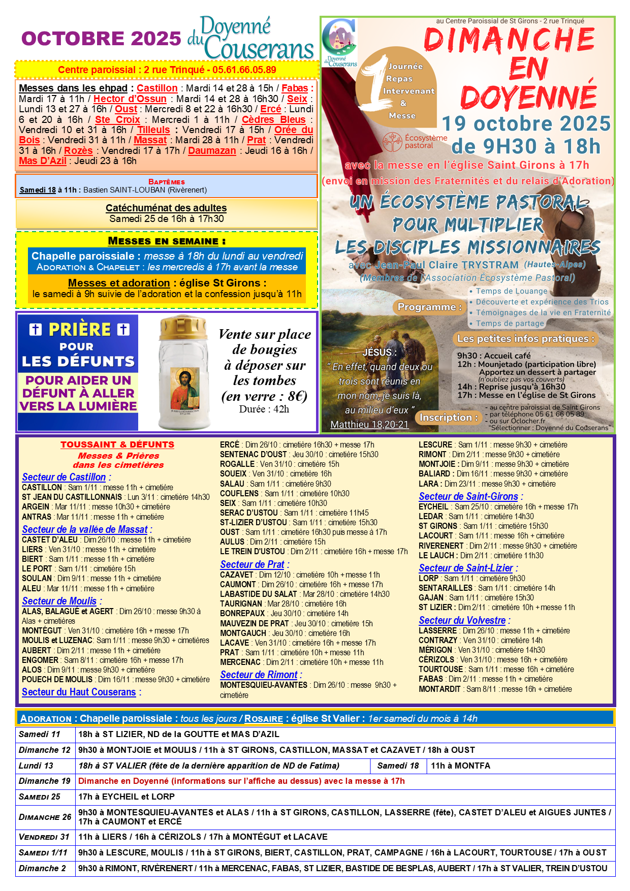 PROGRAMME DES MESSES DU MOIS D’OCTOBRE 2025