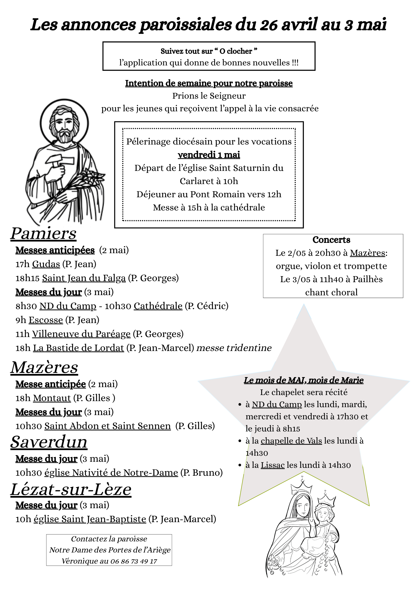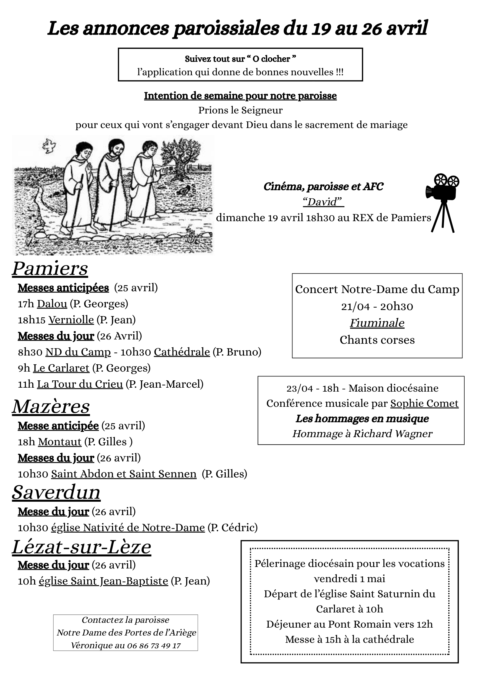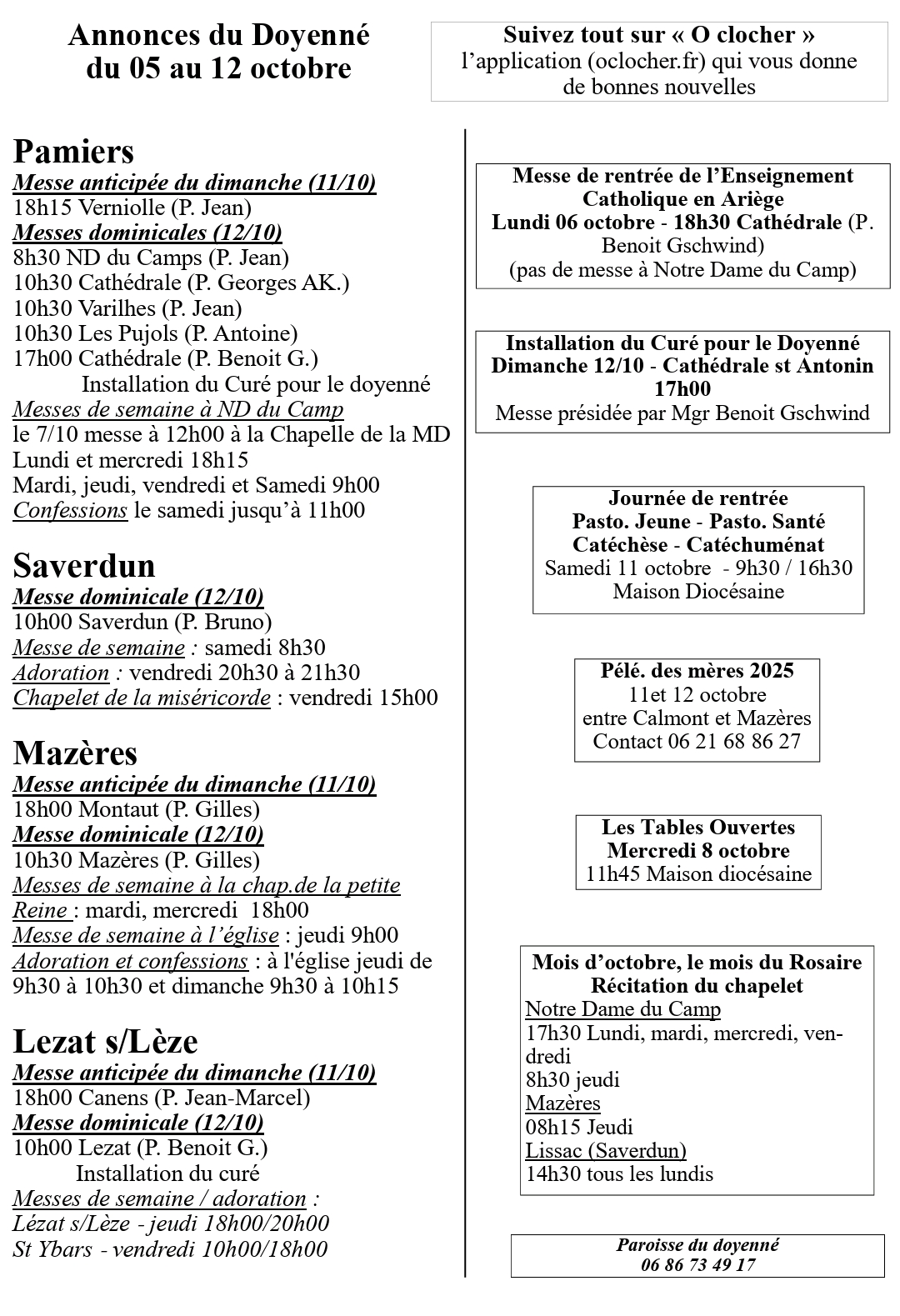 Téléchargez l’appli OCLOCHER et cherchez Paroisse de Pamiers, Mazères, Saverdun et Lézat
