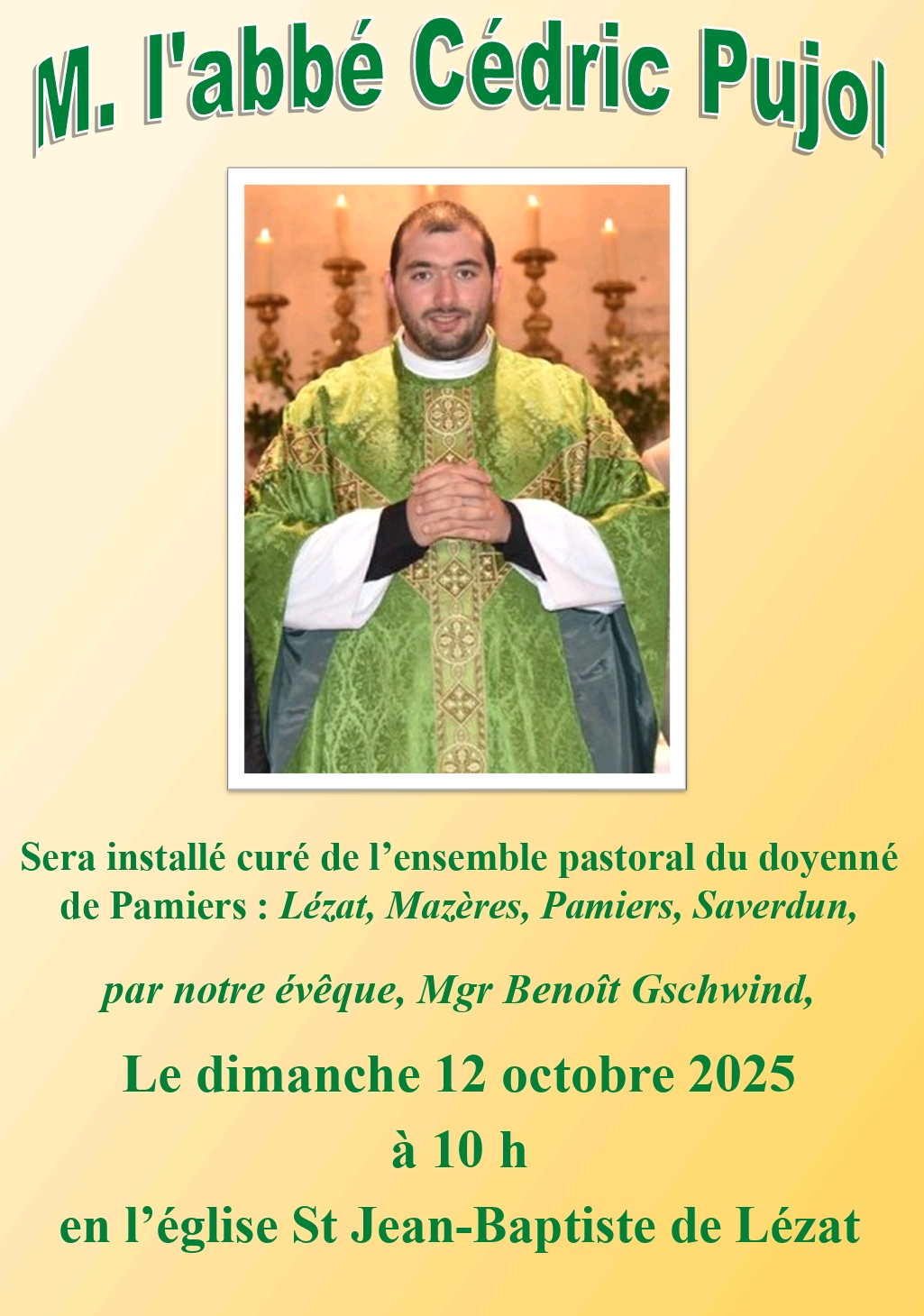 Curé (reponsable de la paroisse) Cédric PUJOL