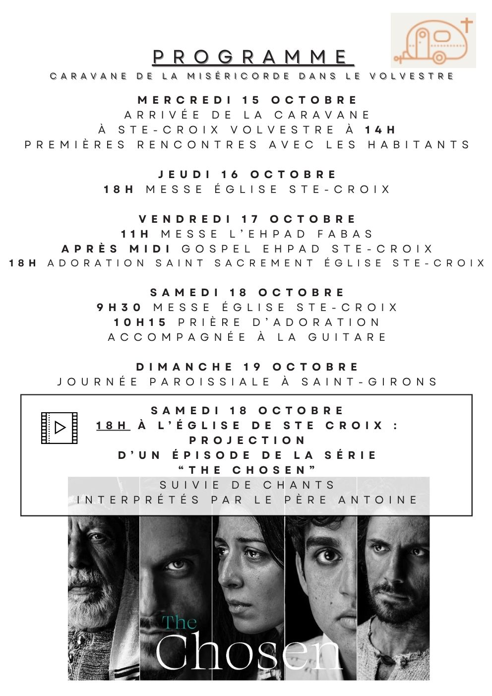 18h : projection « The Chosen » à l’église et chants