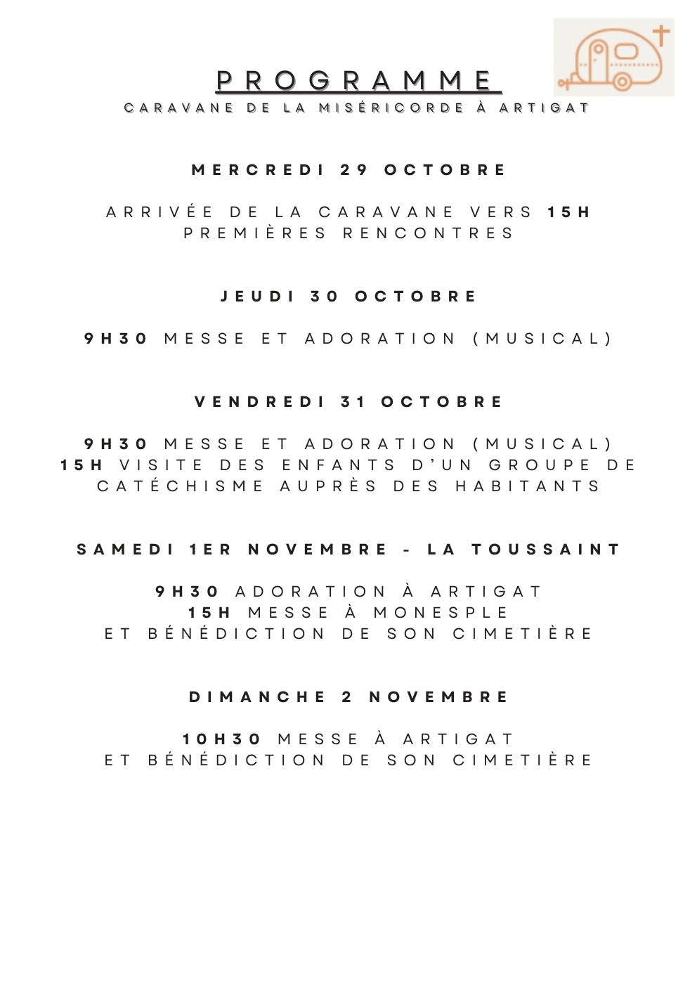 Dimanche 19/10 Participation à la journée paroissiale du secteur du Couserans - 29 Octobre-2 Novembre : Mission à Artigat